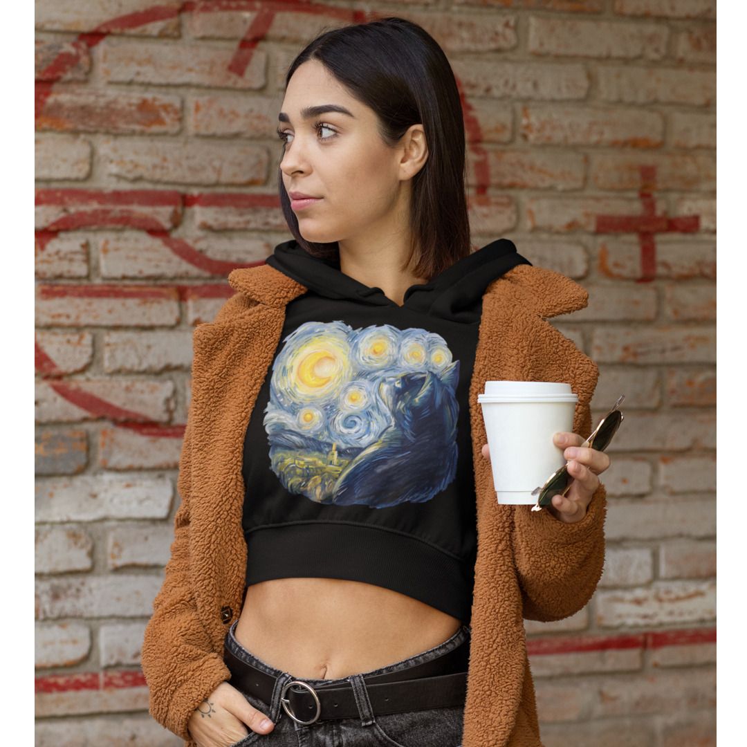 Van Gogh Cat Crop Hoodie